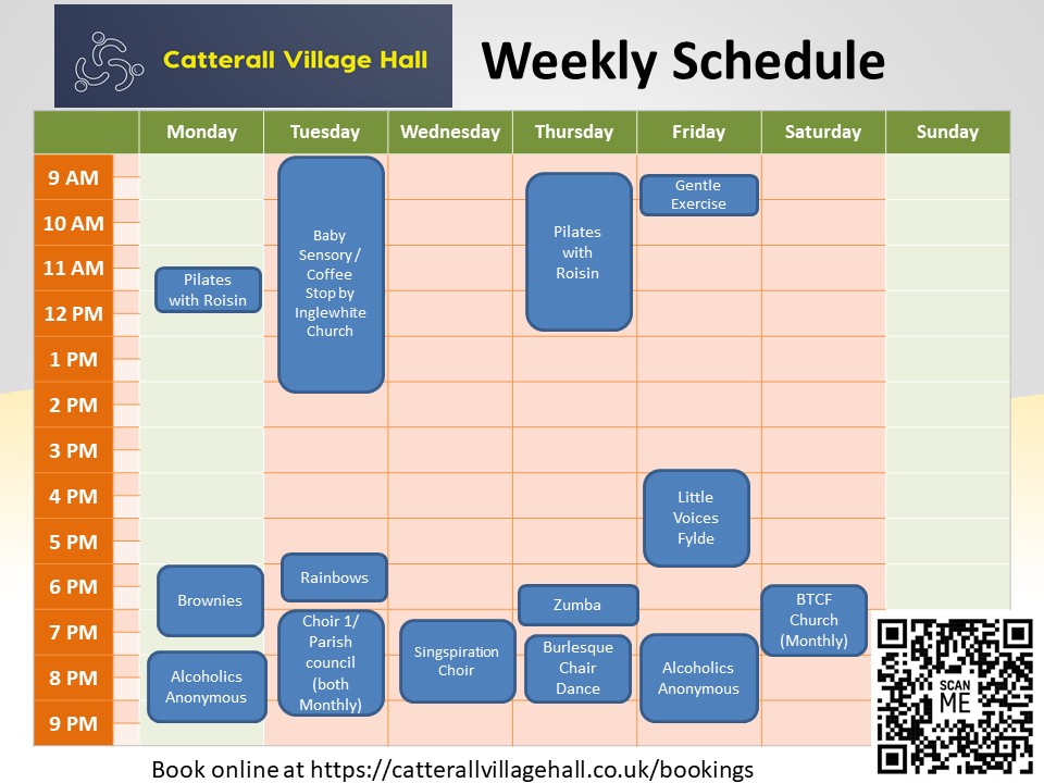 To discuss a booking, please email bookings@catterallvillagehall.co.uk